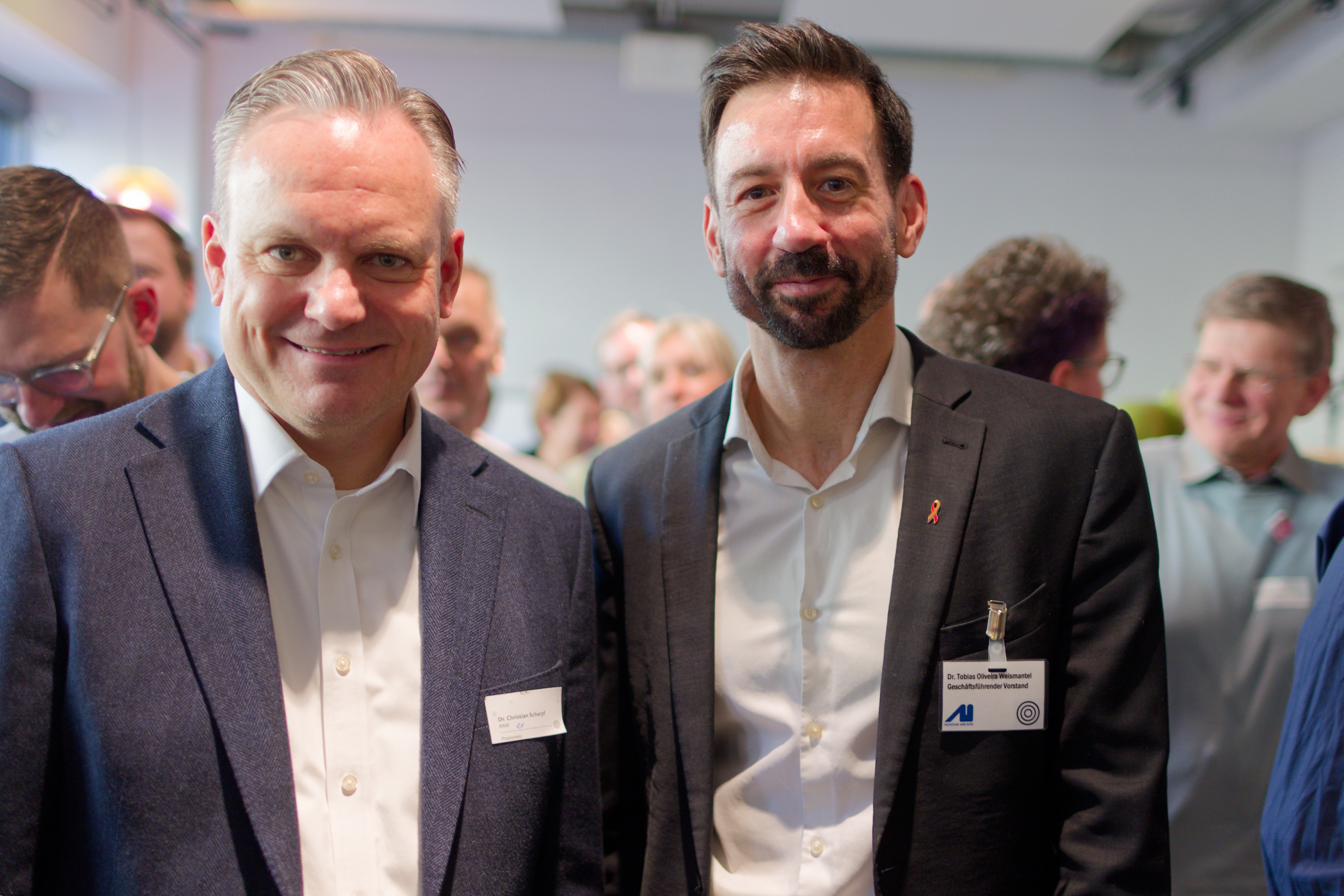 Nach Umbau und umfassender Renovierung konnten wir am 30.1. unser neues Veranstaltungszentrum präsentieren. Rund 100 Gäste aus Politik, Verwaltung, Community sowie zahlreiche Kooperations-partner_innen waren dabei und haben mit uns auf die Zukunft unseres Bereichs "Arbeit & Beschäftigung" angestoßen. Das Grußwort sprach Münchens Referent für Arbeit und Wirtschaft Dr. Christian Scharpf (im Bild links mit dem geschäftsführenden Vorstand Dr. Tobias Oliveira Weismantel).